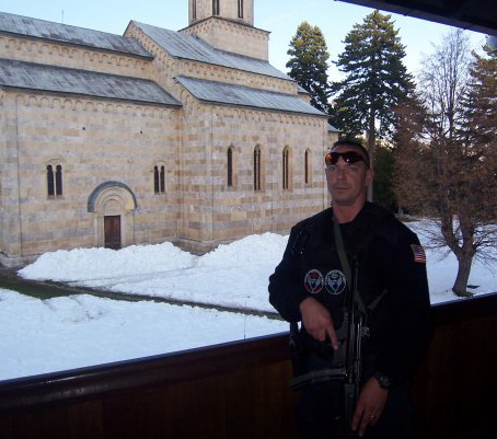 My neighbor, Patrick Minor, as it turns out, is a private security contractor. When I recently moved to my quiet neighborhood, his son kindly took care of our lawn work while my wife and I focused our energies on getting us and our children moved into our new home. Because Patrick is an attentive father, helping his son get his budding lawn care business up and running, I had the opportunity to get to know him a bit and only recently found out what he does for a living. I first learned of it when we became friends on Facebook, when I noticed an imposing picture of him dressed in black and standing in front of an old Christian monastery holding an HK MP5 submachine gun. His comment, in response to a friend inquiring on the location, read simply: