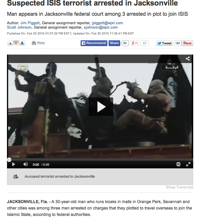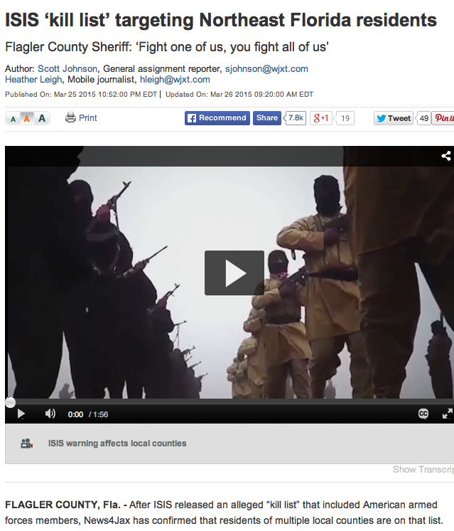 Do not think that we in Jacksonville, or the broader north Florida area, have been immune to the effects of ISIS’ propaganda. It was only in February that a man who owned and operated kiosks at the Orange Park Mall was arrested by the F.B.I. for providing material support to ISIS. More recently, and causing significant alarm, ISIS released a “kill list” of targeted members of the U.S. military that included residents of St. Johns, Clay, and Flagler counties.