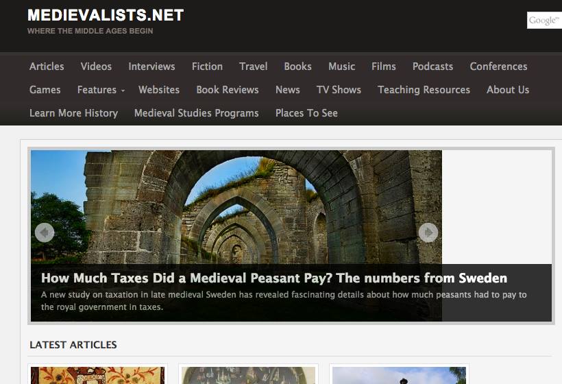 In the meantime, I had started taking part in a few other online projects for medievalists, but I quickly found that academics had real trouble getting their internet work to be taken seriously. Promising efforts such as the ORB basically failed, which was very disappointing. At the same time, I could see that there was a need for the medieval studies community to have some kind of grand website, where they could read about the news, find articles and videos, and highlight some of the great things being done in film, television and music that is medieval-related.