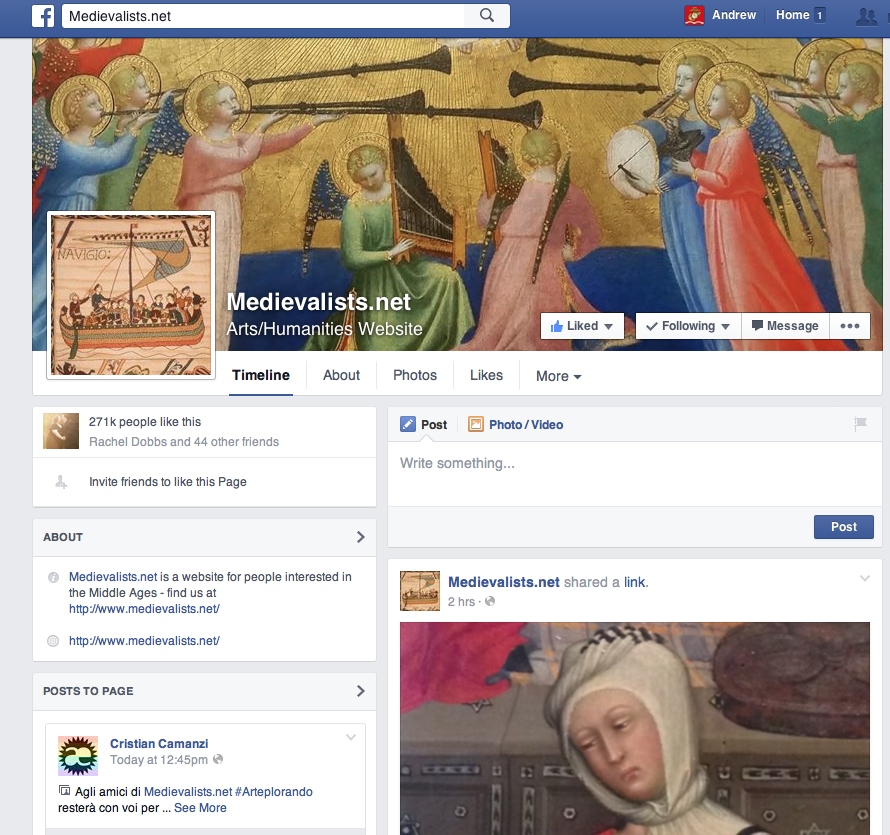 As it turns out, those initial impressions were true. Peter’s extraordinary (but largely unnoticed) influence over how scholarly studies of the Middle Ages are communicated in the online world is much more extensive than I had ever really considered up to this point. He has over 270,000 people who have “liked” the Medievalists.net Facebook page, which means that his postings on Facebook are much more likely to show up in the “feeds” of more than a quarter of a million Facebook users. Additionally, Medievalists.net has over 37,000 followers on Twitter, 4,500 followers on Tumblr, 2400 on Pinterest and 1200 on Google Plus. He also has an email list with about 8000 people who have signed up to receive updates and announcements.